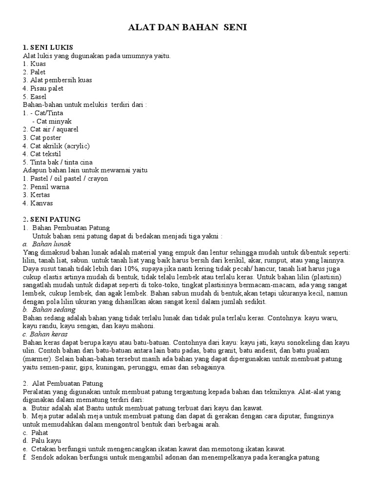 Alat Dan Bahan Seni Patung. Alat Dan Bahan Seni